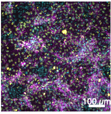 Individuals with CLOVES know better than anybody else how diverse the consequences of a genetic PIK3CA defect can be, especially when the defect itself is somewhat randomly distributed in some cells but not others. Ever since my PhD with Prof Robert Semple, who co-discovered PROS, it has been clear to me that progress in this space will require careful attention to the many cell types that can be affected by PIK3CA defects. I have therefore teamed up with Prof Semple again, along with Prof Liz Patton and Dr Hannah Brunsdon at Edinburgh University (Scotland), on a project that seeks to make more robust and faithful experimental model systems of CLOVES/PROS. We are harnessing the power of zebrafish and so-called human induced pluripotent stem cells to look at a variety of different cell types and the nitty gritty details of their responses to a PIK3CA defect. I am particularly excited to share some recent advances arising from work done in my group in collaboration with Prof Semple, with support from CSC funding. After several rounds of trial-and-error, we have finally succeeded in making blood vessel cells in a dish, starting from human induced pluripotent stem cells with and without PIK3CA defects. This is giving us an unlimited source of material to use for further studies of PIK3CA defects and relevant treatment testing in these particular cells. It is incredible to watch this cell conversion take place in a dish under the microscope. We can even make the blood vessel cells behave more like those found in arteries or veins. This is important given the high prevalence of venous malformations in CLOVES and other PROS subtypes. We can use various dyes to highlight features of the cells we have made, which gives us rather lovely pictures to look at in the end (have a look below for an image that I captured recently).